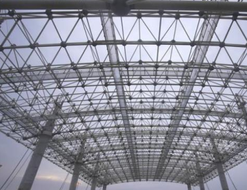 整體提升施工方法的基本步驟為:首先在地面拼裝好鋼屋蓋的各級衍架及其內部必要的支撐體系,然后以安裝在各鋼柱頂部的提升支架作為支座,在其上布設穿心式千斤頂并通過鋼絞線將鋼屋蓋整體提升,最后待鋼屋蓋整體提升到設計位置時再超提升一定高度,然后逐點落位并與支柱的鋼牛腿連接。
