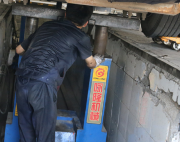 在檢修師傅工作時(shí),臥式千斤頂便承擔(dān)了支撐公交車底盤的重任。